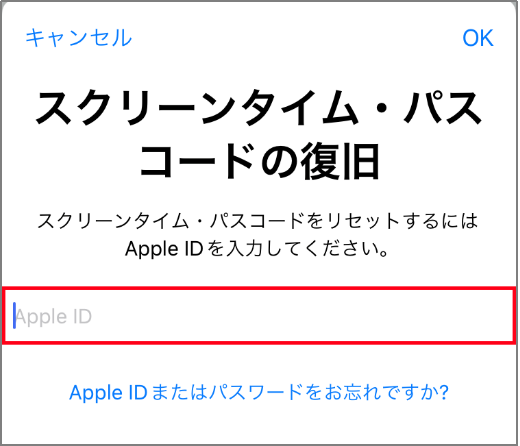 - Apple IDとパスワードを入力後、「OK」をタップします。