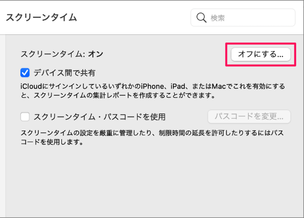- もう一度「スクリーンタイムをオフにする」をタップします。
