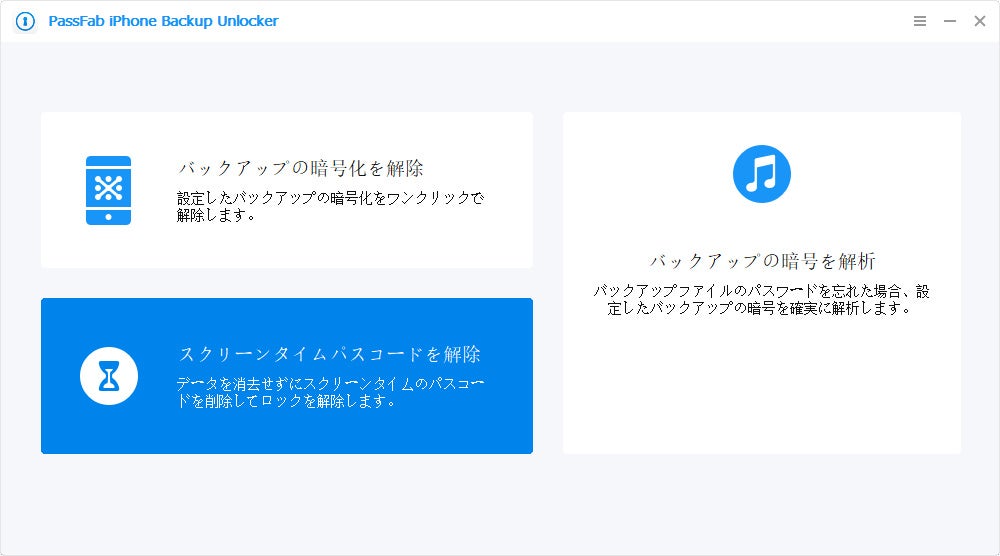 スクリーンタイム・パスコードやApple I、パスワードを忘れてしまった、あるいはバックアップデータを取得していない、操作が複雑だと不安といった場合には、簡単で短時間に解決できる専門ツールの「PassFab iPhone Baclup Unlocker」がオススメです。データを破損することなく安全にスクリーンタイムを消すことが出来ます。30日間の返金保証とサポート体制が敷かれているため、初心者でも安心して利用することが出来ます。