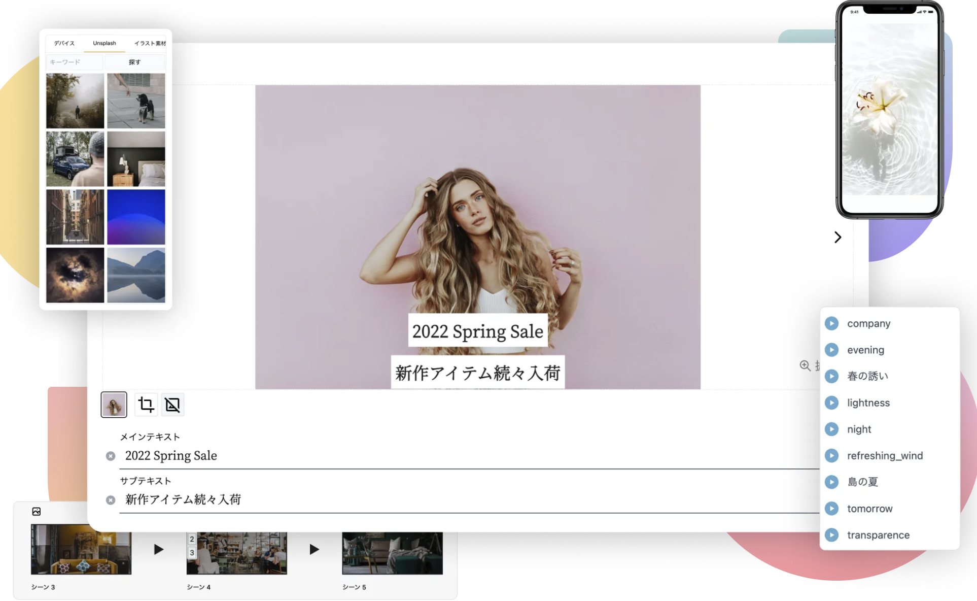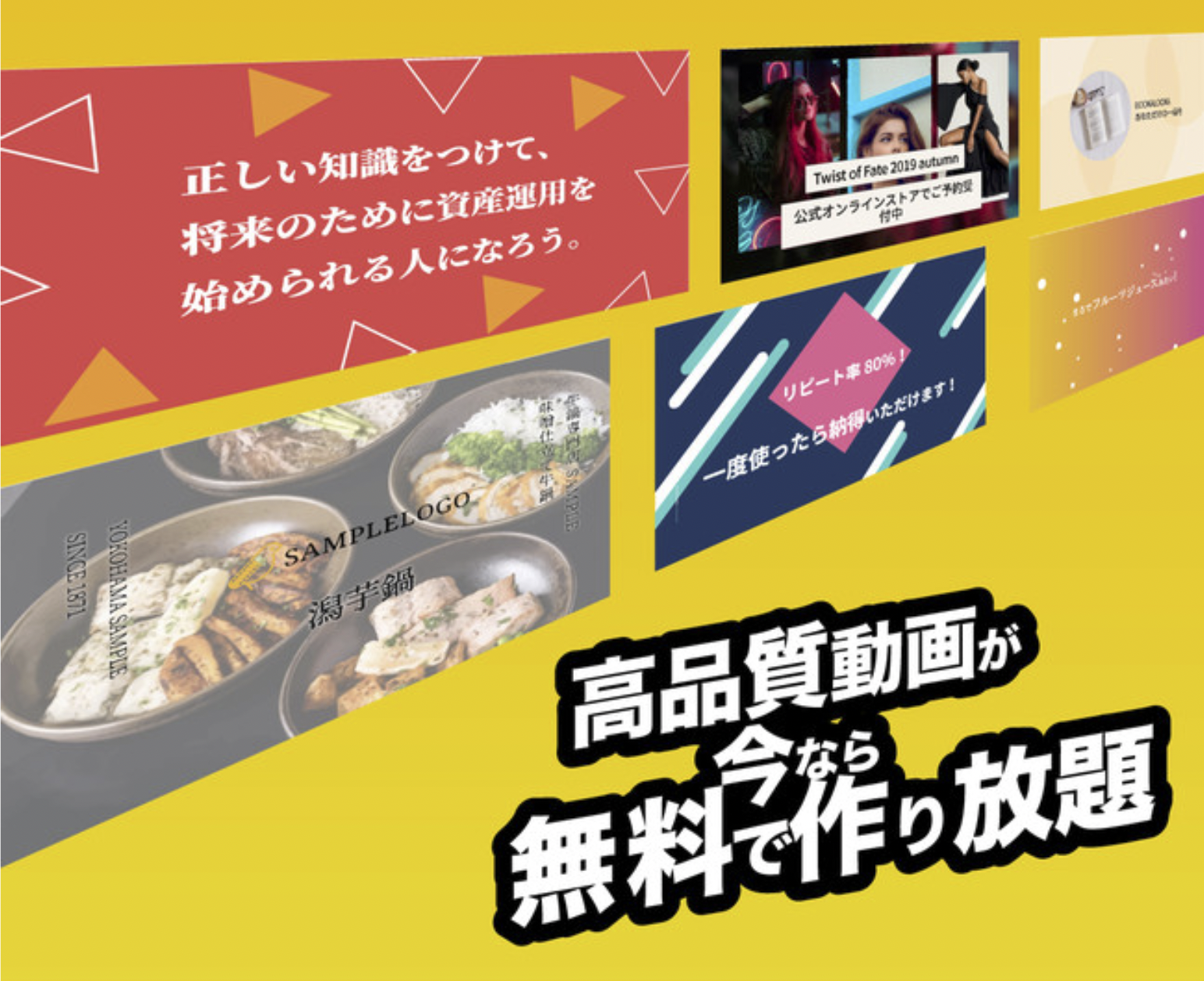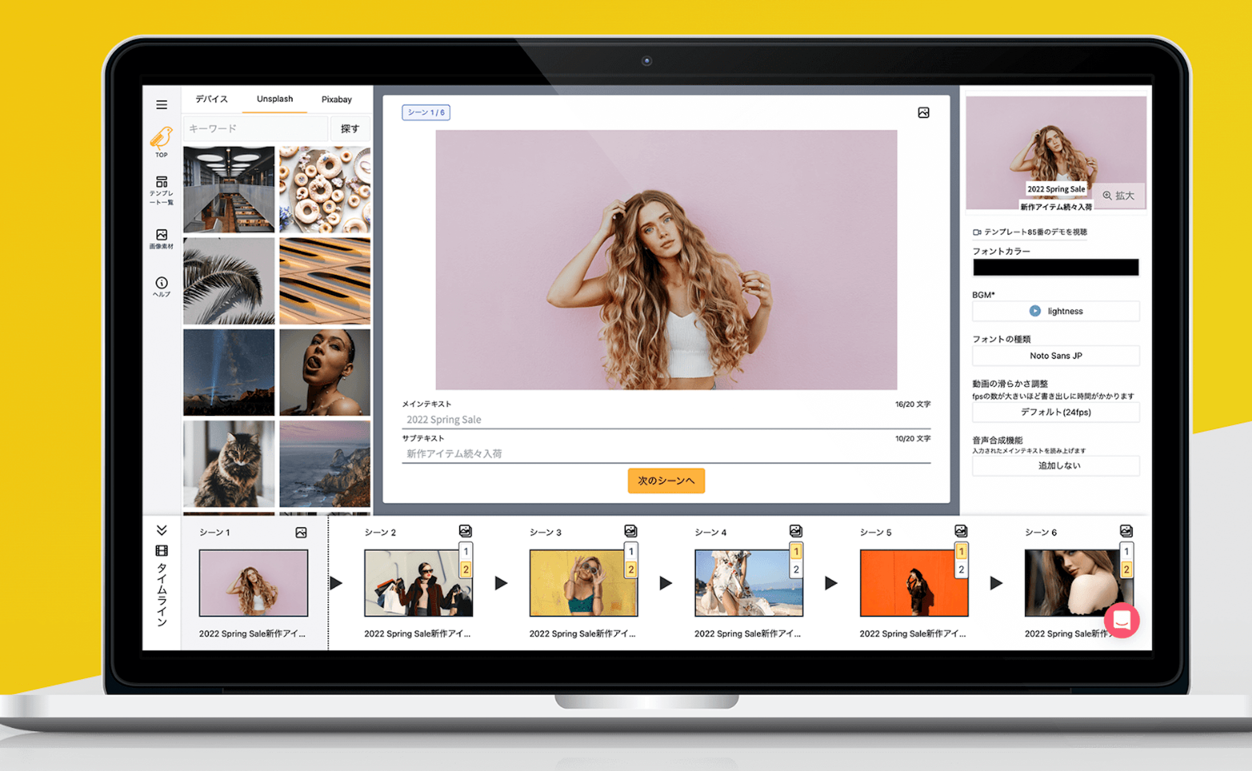 →数多くの動画テンプレートを元に、画像とテキストを無限に組み合わせることができます。