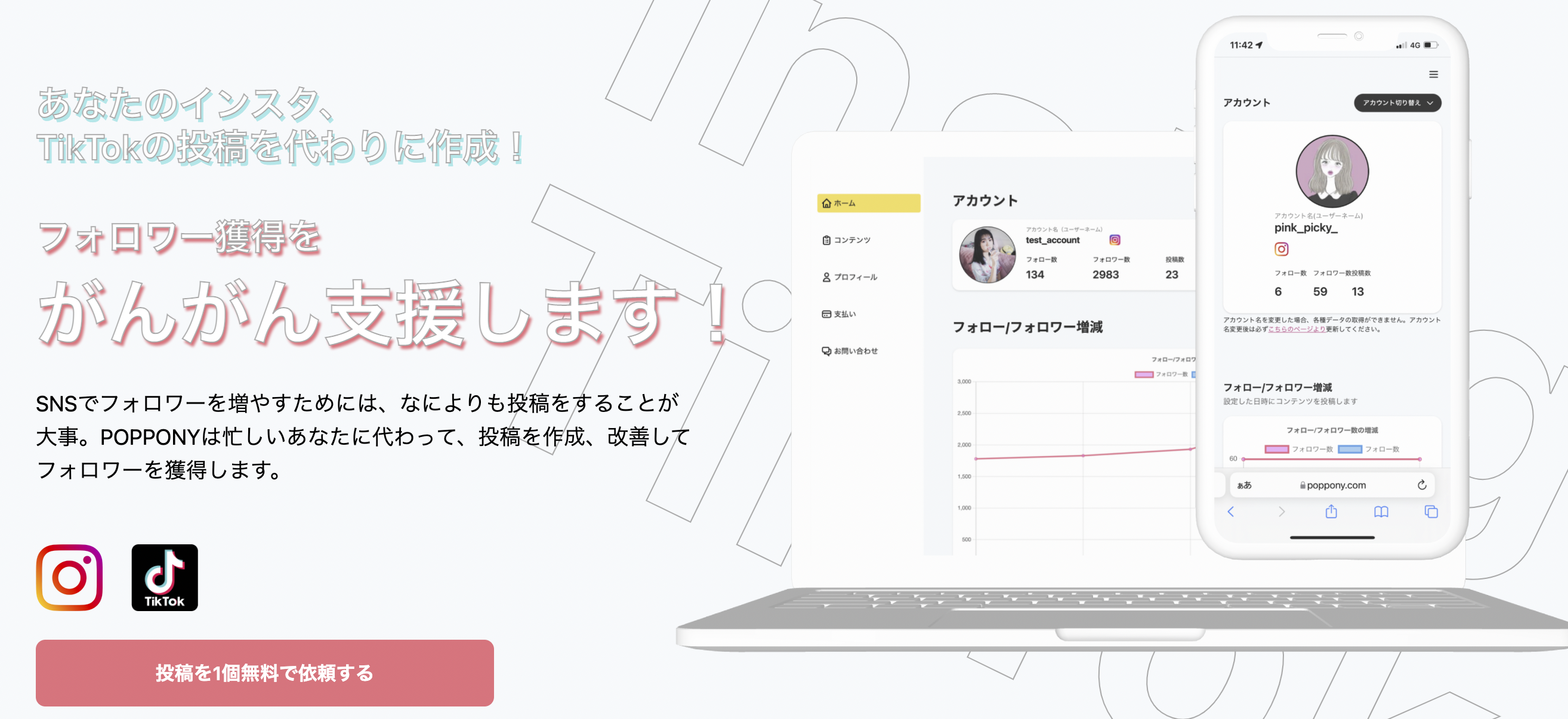 月額19800円よりInstagram, TikTokの運用代行をさせて頂いております。