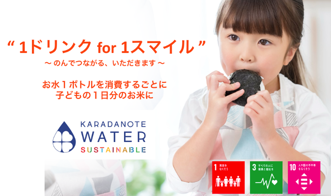 昨今、新型コロナウイルス感染拡大に伴う経済的打撃は、経済的な困難を抱える家族をさらに深刻な状況に追い込んでいます。令和元年の「国民生活基礎調査」によると「子どもの貧困率」は平成30年時点で13.5%と、7人に1人の子どもが貧困状態にあります。このような社会情勢ならびに企業活動におけるSDGsの重要性の高まりから、日頃消費しているものが社会課題の解消に寄与するとともに、食の支援を通じて子どもの笑顔に繋がる『カラダノートウォーターサステナブルプラン』を開始しております。