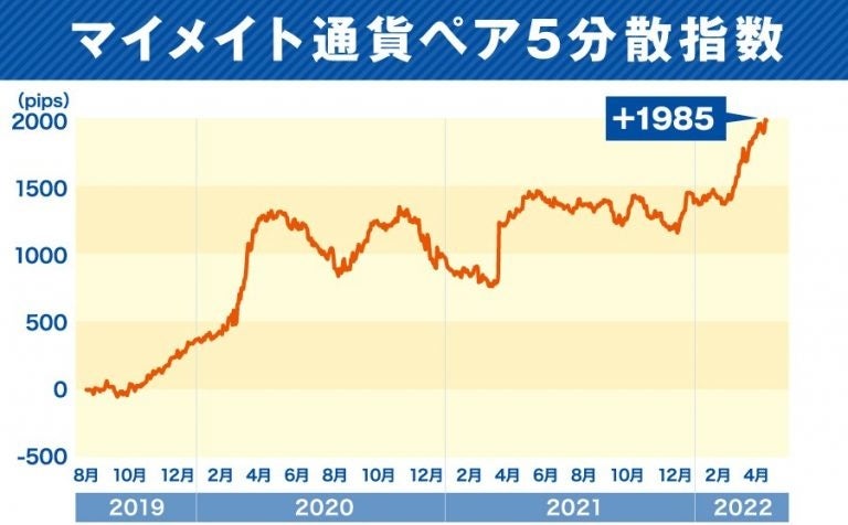 ▼マイメイトブログ「新指標「マイメイト通貨ペア5分散指数」で分析!2022年4月度成績レポート」