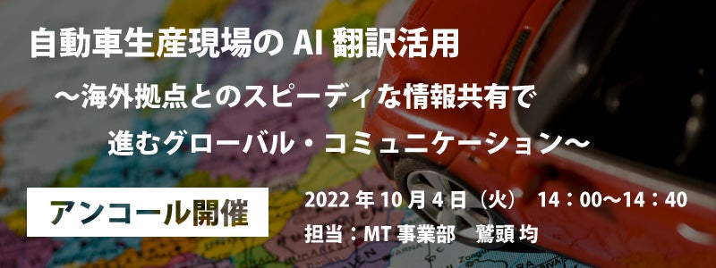自動車業界特有の技術書類はもちろん、国際規則の正確な翻訳にも対応したAI自動翻訳「T-4OO」の実演を交え、明日から使える業務効率化事例をお伝えします。