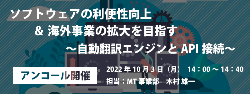 そこで本ウェビナーでは、マニュアル制作プラットフォームや法務クラウドエディタ等と連携している弊社のAI自動翻訳「T-4OO」の実例をご紹介しながら、翻訳ツールとのシナジー効果、そして新しいビジネスの可能性について解説いたします。