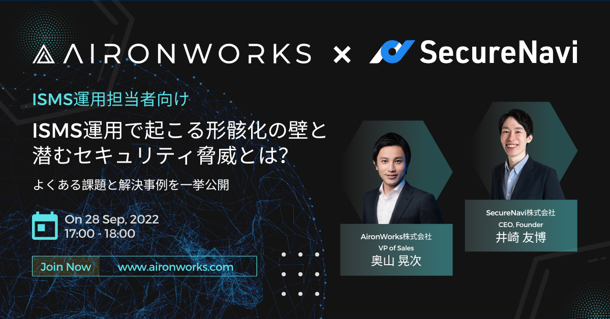 17:30 – 17:45 『ISMS認証取得企業が抱える情報セキュリティ脅威と対策』by AironWorks