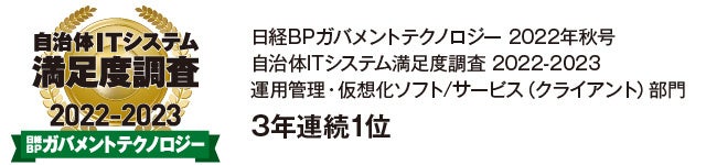 Sky株式会社は、株式会社日経BP(本社:東京、社長:吉田 直人)が2022年9月26日に発表した「日経BPガバメントテクノロジー 2022年秋号 自治体ITシステム満足度調査 2022-2023」において、「運用管理・仮想化ソフト/サービス(クライアント)部門」で3年連続1位を獲得しました。