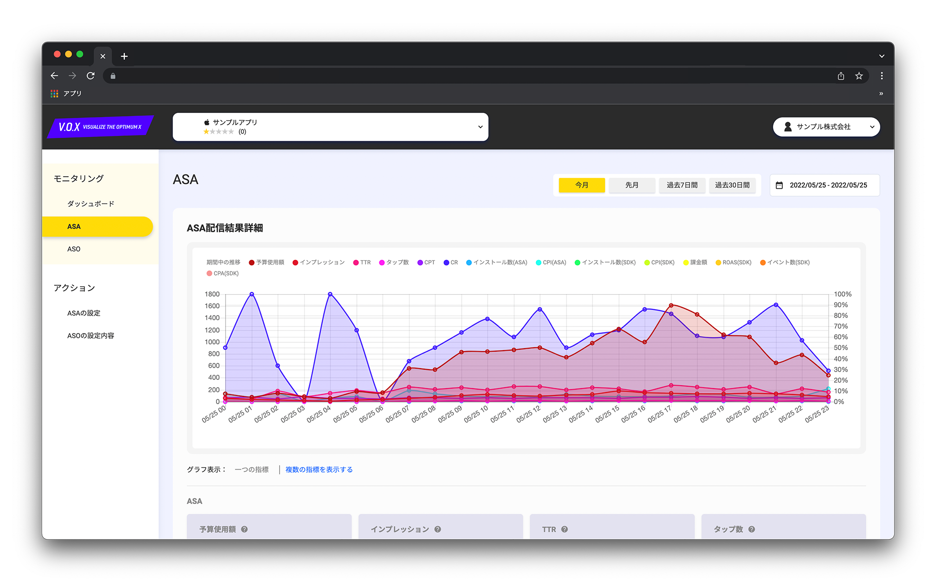 ASO機能搭載型の広告自動配信SaaS「V.O.X」( https://lp01.v-o-x.io/ )は、お客様のご要望に応え、指定した日付の時間単位でのグラフ表示機能を追加いたしました。これにより1時間単位での分析が可能になり、お客様にはより詳細なマーケティング分析を行っていただけるようになります。