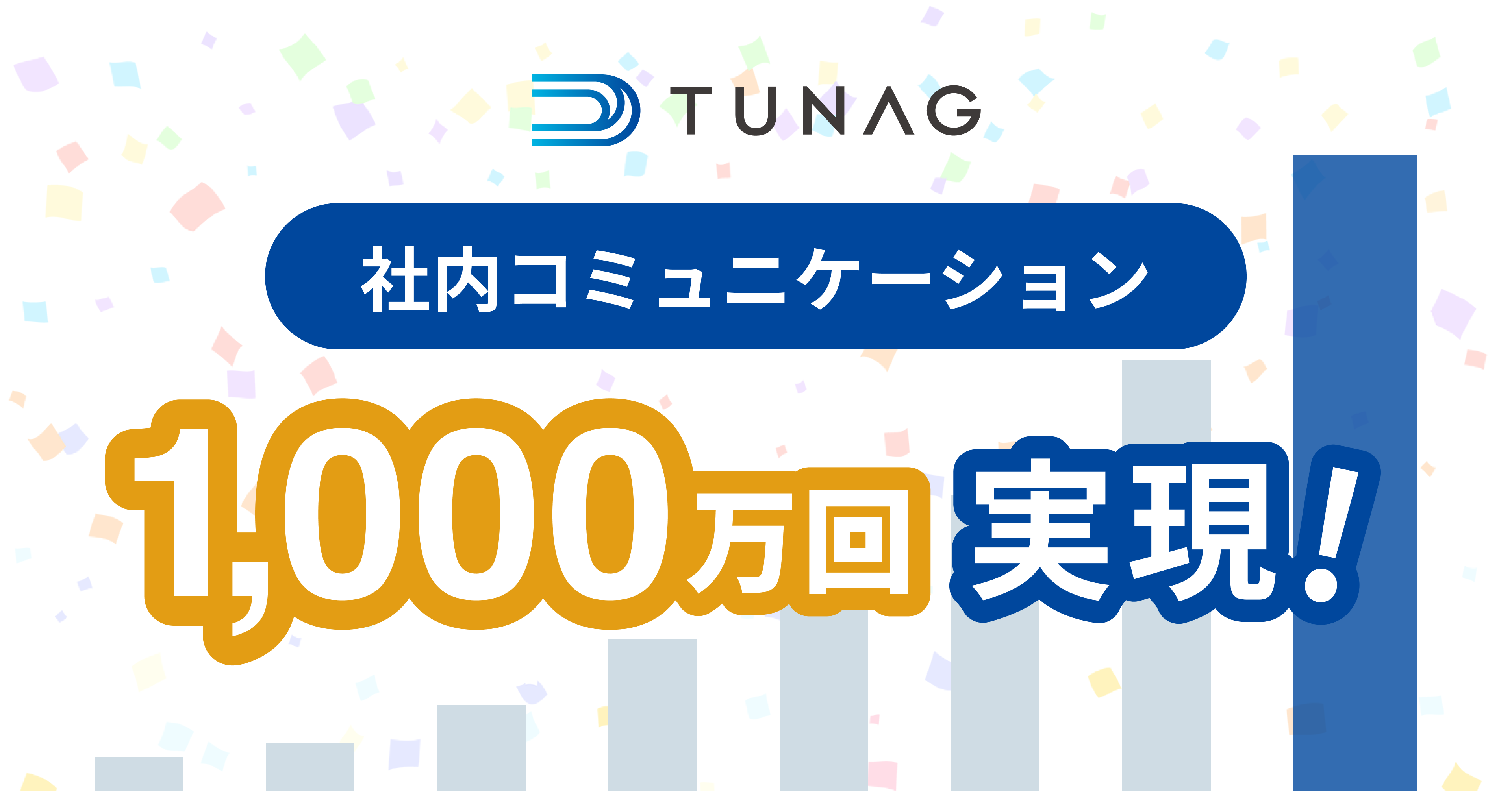 TUNAGは、2022年4月にサービス提供開始5周年を迎え、2022年8月には利用企業数が500社を突破しました。そして、このたびTUNAGを通じて1,000万回の社内コミュニケーションが生まれました。