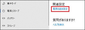 2、「電源とスリープ」>「電源の追加設定」とクリックします。