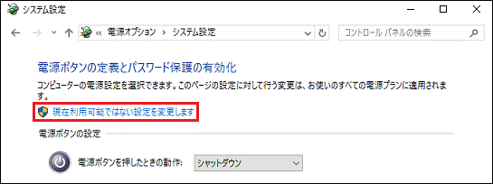 過去には、高速スタートアップとWindows Updateの組み合わせでてトラブルが発生したケースがありますので、念のため高速スタートアップをオフにします。