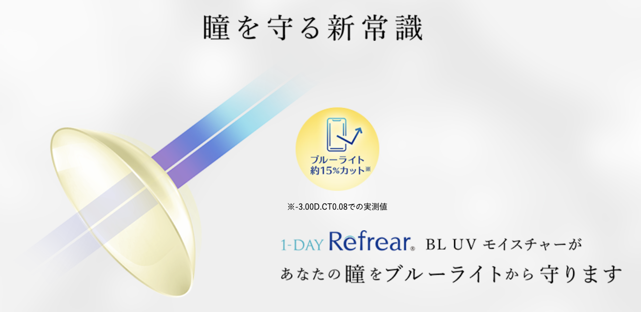 ブルーライトの攻撃から眼のダメージを防ぐ 1-DAY Refrear BL UV moistureで防御⼒UP!
