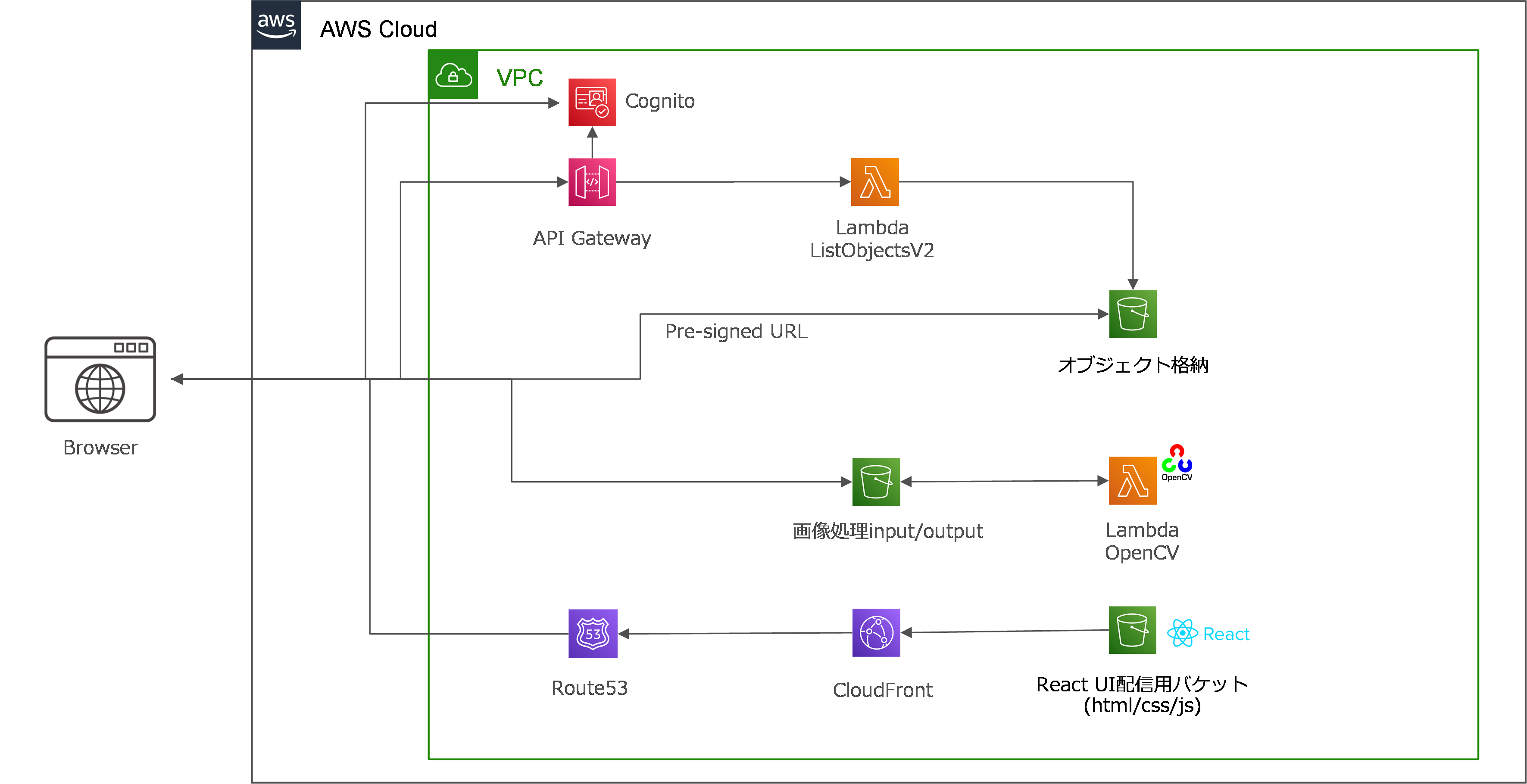 本プロジェクトにおいて、AWS環境の開発及びAmazon S3に格納した画像を閲覧するための管理画面の開発を行いました。