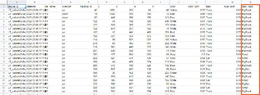 以前の仕様では、大型・小型の分類カウントが出来なかったため、CSVデータを大型・小型と分けていただく作業が必要でした。今回アップデートを行う事により、解析いただければ、国土交通省の「一般交通量調査について」の要件通りの、解析データを入手していただく事が可能となり、さらに交通量調査の工数削減を実現致しました。