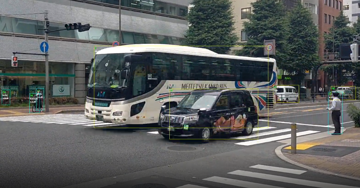 調査したい動画をCloud上にアップロードしていただく事で、Cloud上にあるAIを活用し、任意の設定をして通過する車の数と人の数をカウントするサービスです。世界最高レベルの実績あるAIを使用してカウントしているため、90%以上のカウント精度となっており、世界最高レベルの精度でカウントできます。