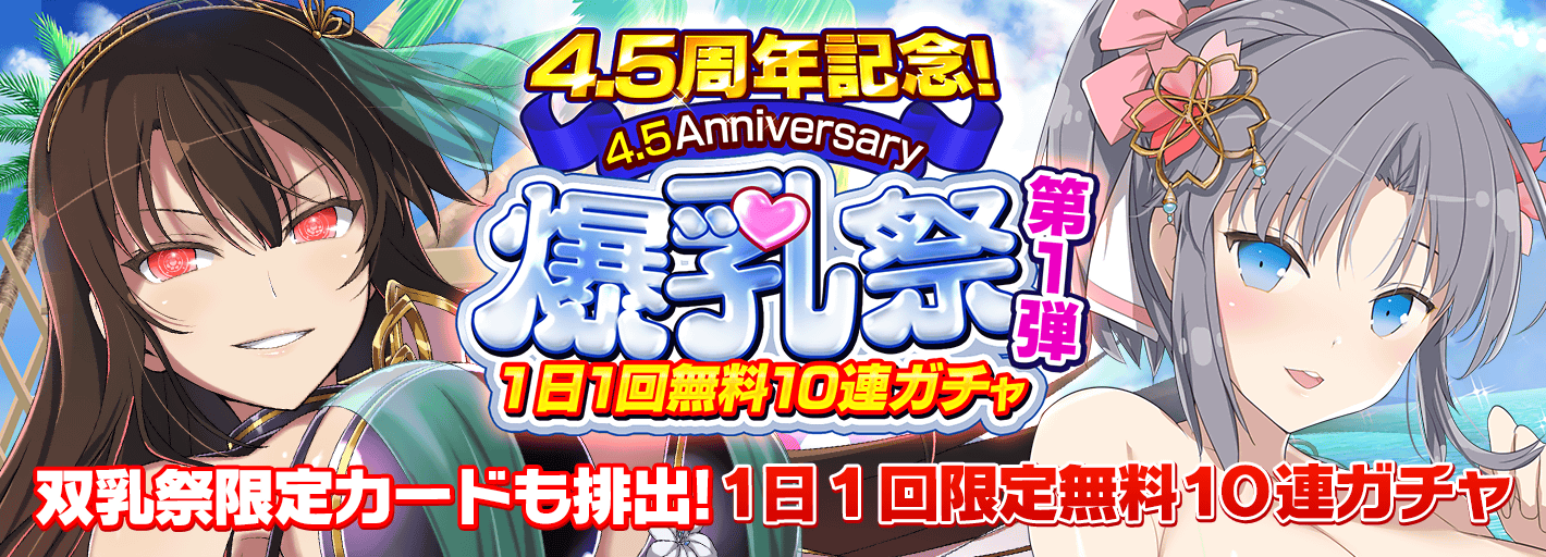 - 「4.5周年記念!爆乳祭1日1回無料10連ガチャ」開催!