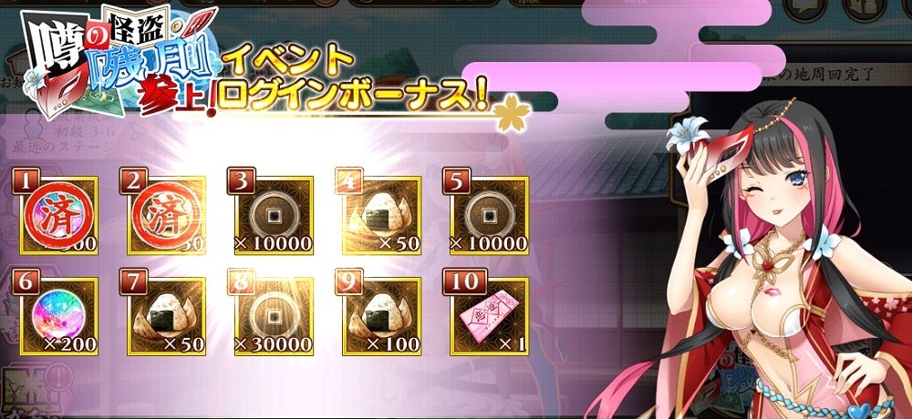 「噂の怪盗『残月』参上!」イベント開催中は毎日限定ログインボーナスが!