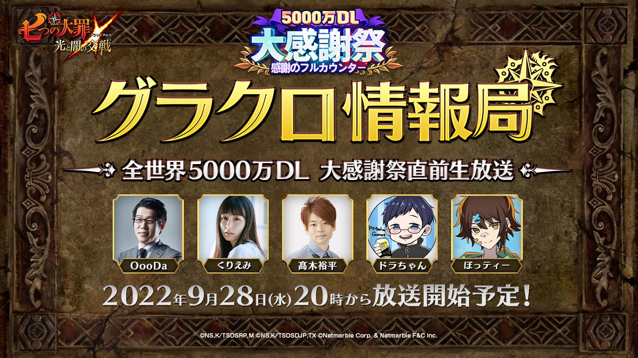 ◆グラクロの最新情報をお届けする公式番組「第38回グラクロ情報局 ~全世界5000万DL大感謝祭直前生放送~」―9/28(水)20:00より生放送!