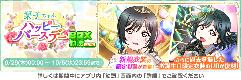 お誕生日記念UR部員は一部未実装のものがあります。