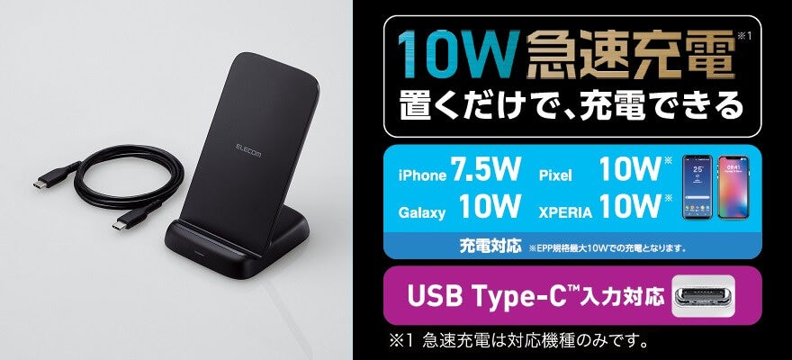 <[スタンドタイプ(EPP規格10W][ケーブル付属]ブラック>