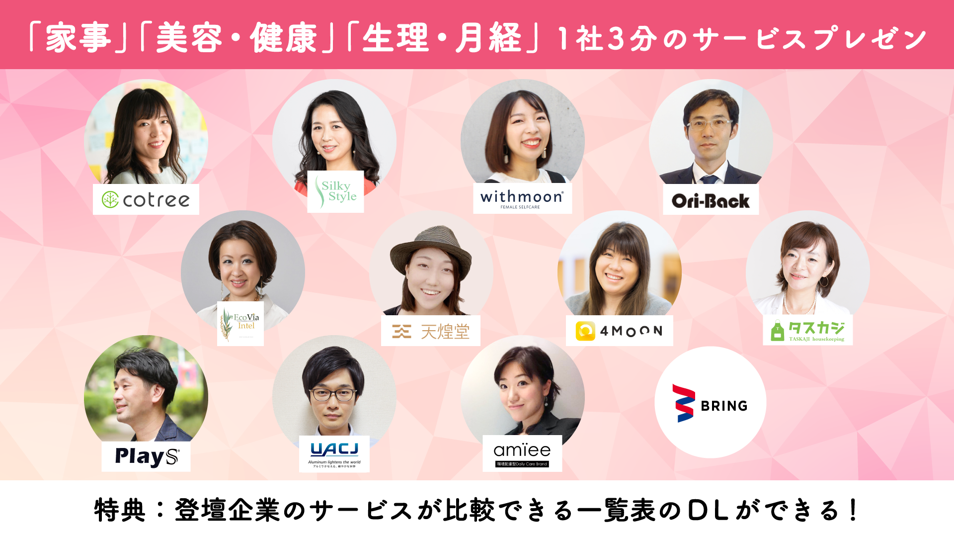 オンライン出展ブース以外に、女性特有の悩みを解決するフェムテック・フェムケア・女性活躍推進に関する製品サービスを手軽に知ることのできる場として、1社3分プレゼンの動画を配信。さらに料金や導入メリットなど製品サービスの詳細が一目で分かる一覧比較表も無料配布します。女性活躍推進や働きやすい職場作りに取り組む方にとって、手軽かつ効率的な情報収集が可能です。
