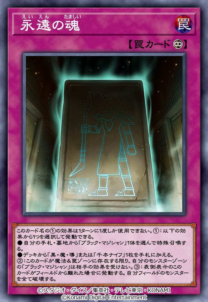 今回新たに登場した「リンク・レボリューション」は、「デコード・トーカー」の他、Soulburnerのエースモンスター「転生炎獣ヒートライオ」や、Go鬼塚のエースモンスター「剛鬼ザ・グレート・オーガ」などを収録しました。その他、「ブラック・マジシャン」デッキにおいて非常に重要な永続罠カード「永遠の魂」など、デッキ構築の幅が広がるカードを多数収録しています。ぜひこの機会に『遊戯王 デュエルリンクス』をお楽しみください。