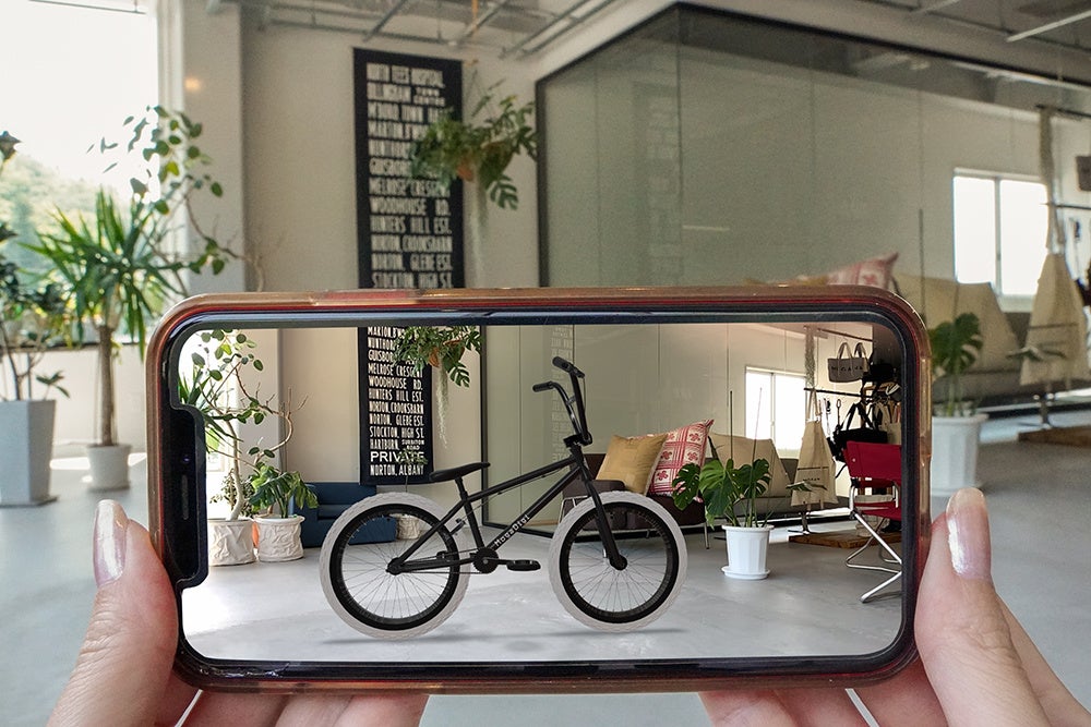 SaaS版では、空間に合わせてアイテムを表示する「空間認識」のARをご利用いただけます。エンドユーザー様が指定する場所へアイテムを配置することが出来るので、例えば、家電や家具などの試し置きシミュレーションによく使われます。