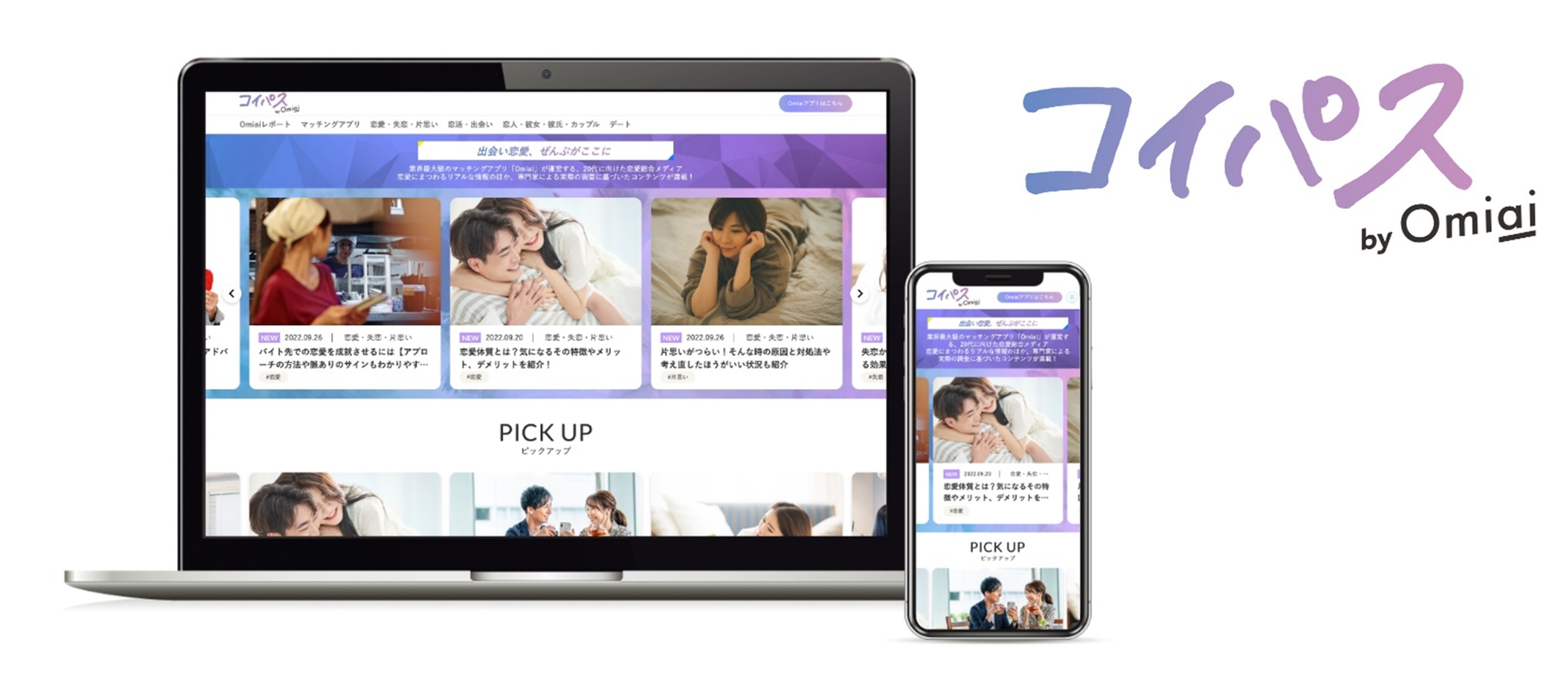 「Omiai」は、サービス開始10周年を迎えた今年を皮切りに、今まで以上に「より良い出会いや恋愛の指針(コンパス)」となることを目指した恋愛メディア『コイパス』をリリースし、気づきやヒントを皆様に提供していきます。