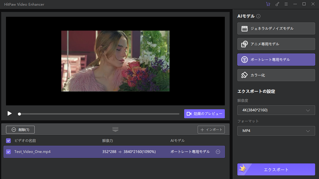 HitPaw Video Enhancerは、動画の品質を驚くほどに改善できる最高の自動動画高画質化ソフトです!HitPaw Video Enhancerを使えば、ぼやけた動画が高解像度・高画質に生まれ変わります!HitPaw Video Enhancer にはAIが搭載されているため、ポートレートやアニメなど動画のタイプに応じてAIを選択するだけで、細かな設定は必要ありません。AIが自動で高画質化するための最適な設定を調整してくれます。無料体験版もご用意しておりますので、ぜひお試しください!