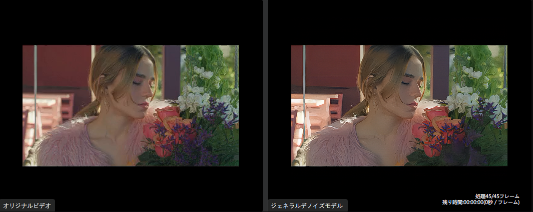 ジェネラルデノイズモデルと比べて人物周辺の鮮明さや陰影が一層際立ちます。