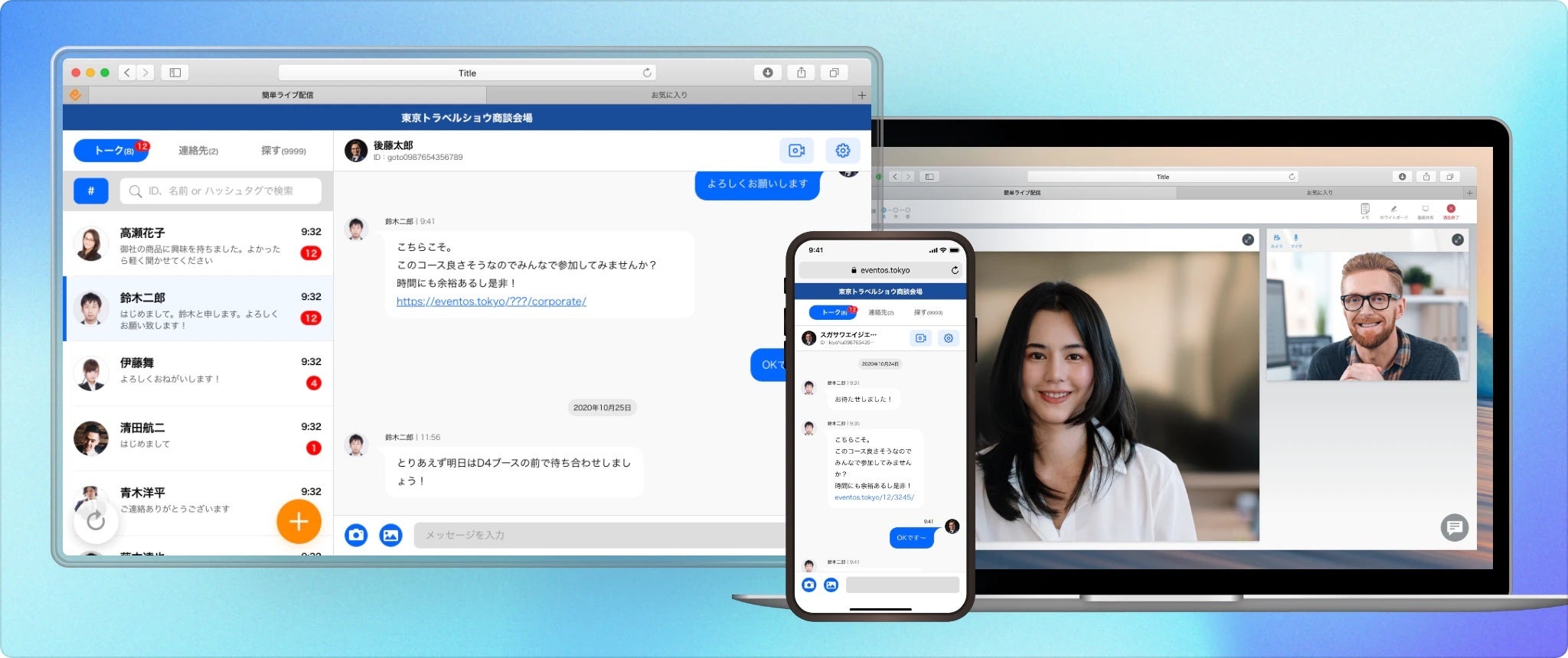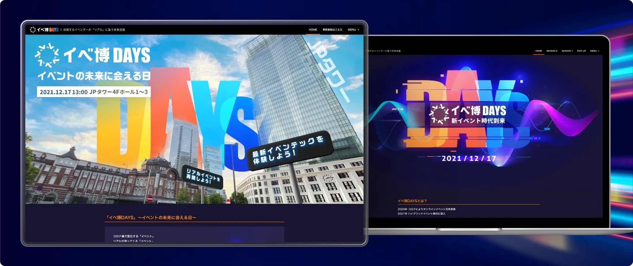 eventos(https://eventos.tokyo/)はオンラインイベント・リアルイベント双方に対応可能なイベントの公式WEB・アプリを短期間で作成、公開可能なプラットフォームです。