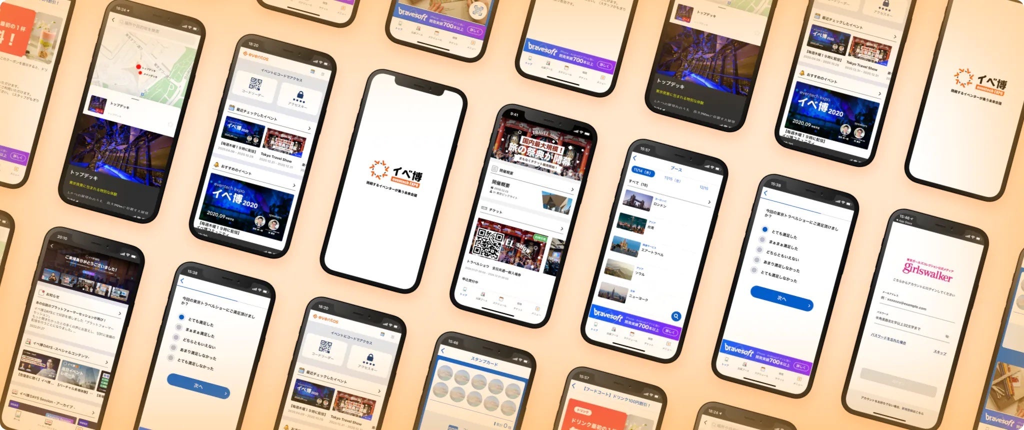 世界3大ゲームイベント「東京ゲームショウ」や「東京モーターショー」「東京ガールズコレクション」。アジア最大規模の福祉機器・用品の展示会「HCR(国際福祉機器展」、アジア最大のコーヒーイベント「SCAJ」、日本各地で毎週開催されるミニ四駆大会「TAMIYAパスポート」、最近ではオンライン展示会・オンライン株主総会、オンライン合同説明会など、大規模イベントから企業のプライベートショーまで、リアルイベント・オンラインイベント・ハイブリッドイベントと多岐に渡るイベントの公式WEB・公式アプリとして、これまでに6,000を超えるイベント・累計250万人以上のユーザーに利用されています。