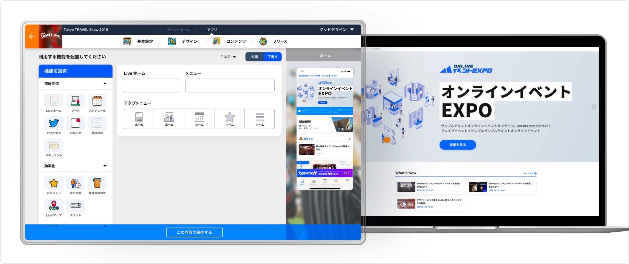 eventosの特徴として、ノーコードでWEB・アプリ双方のイベントページの制作が可能です。