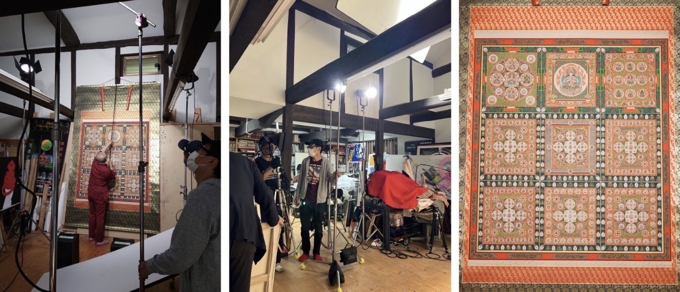 曼荼羅掛け軸(現物アート)を、2億画素の超高解像度カメラで撮影してNFT化している現場