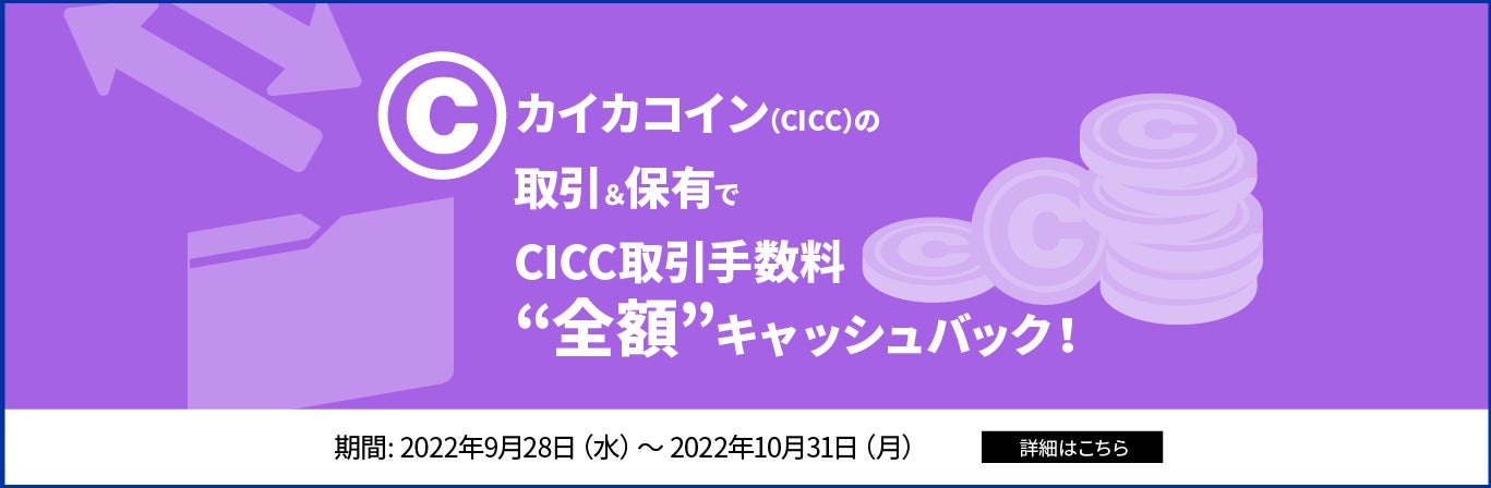 当社子会社の株式会社カイカエクスチェンジにおいて2022年9月28日(水)より「カイカコイン(CICC)取引&保有で手数料全額キャッシュバックキャンペーン」を開催いたします!