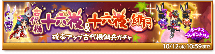 期間中、「古代機十六夜&十六夜・緋月確率アップ 古代機鋼兵ガチャ」を販売します。