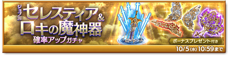 期間中、「ジョブ別 セレスティア&ロキの魔神器確率アップガチャ」を販売します。
