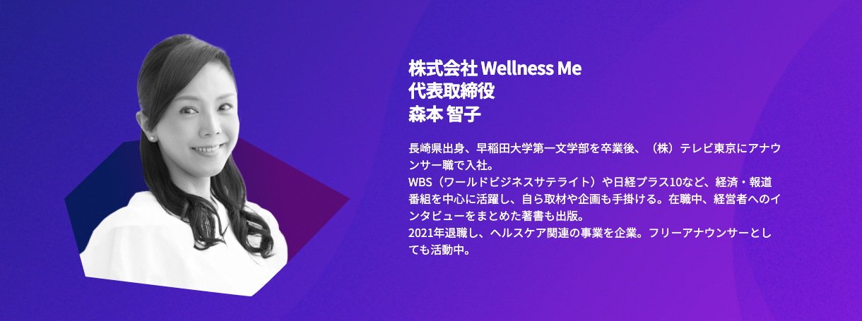 モデレーター:元テレビ東京アナウンサーの森本智子さんがモデレーターを務めます。