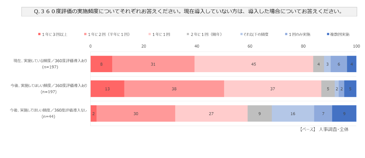 ■人事調査では年1-2回で7割を超え、導入企業は今後さらに頻度を上げたい意向が見られる。