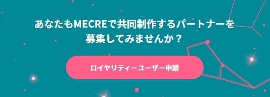 ロイヤリティユーザーとは、MECREでパートナー募集する権利を持つユーザーのことを指し、これまではMECRE事務局からの招待やThe VOCALOID Collection(以下、ボカコレ)のランキング上位入賞者へ付与されるものだったが、意欲のあるクリエイターを広く募る形となっていく。