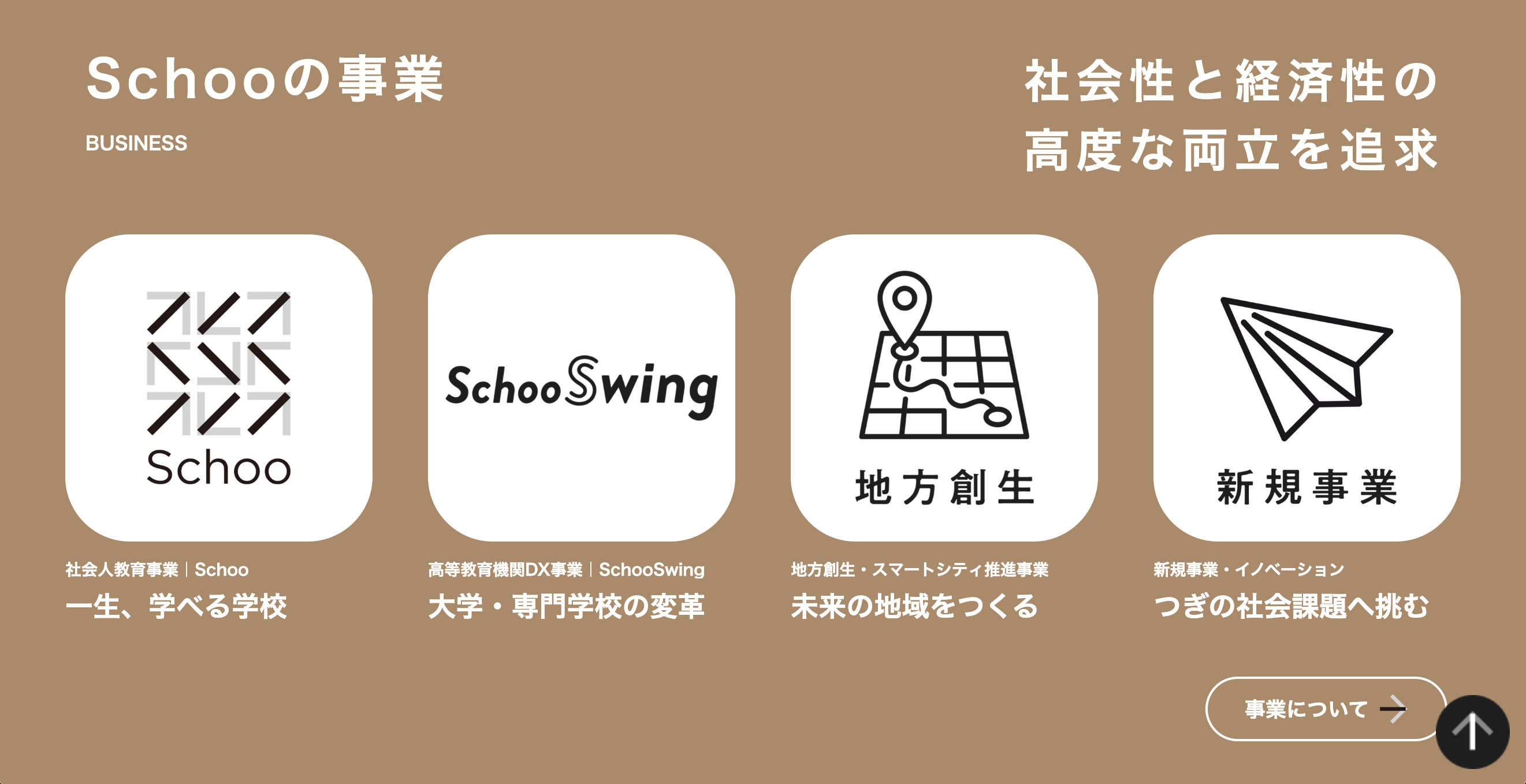 URL:https://corp.schoo.jp/(コーポレートサイト)・https://schoo.jp/ (個人向けサイト)・https://schoo.jp/biz(法人向けサイト)・https://dx.schoo.jp/(高等教育機関向けサイト)・https://pencil.schoo.jp/(オウンドメディア)・https://note.com/schoo(公式note)