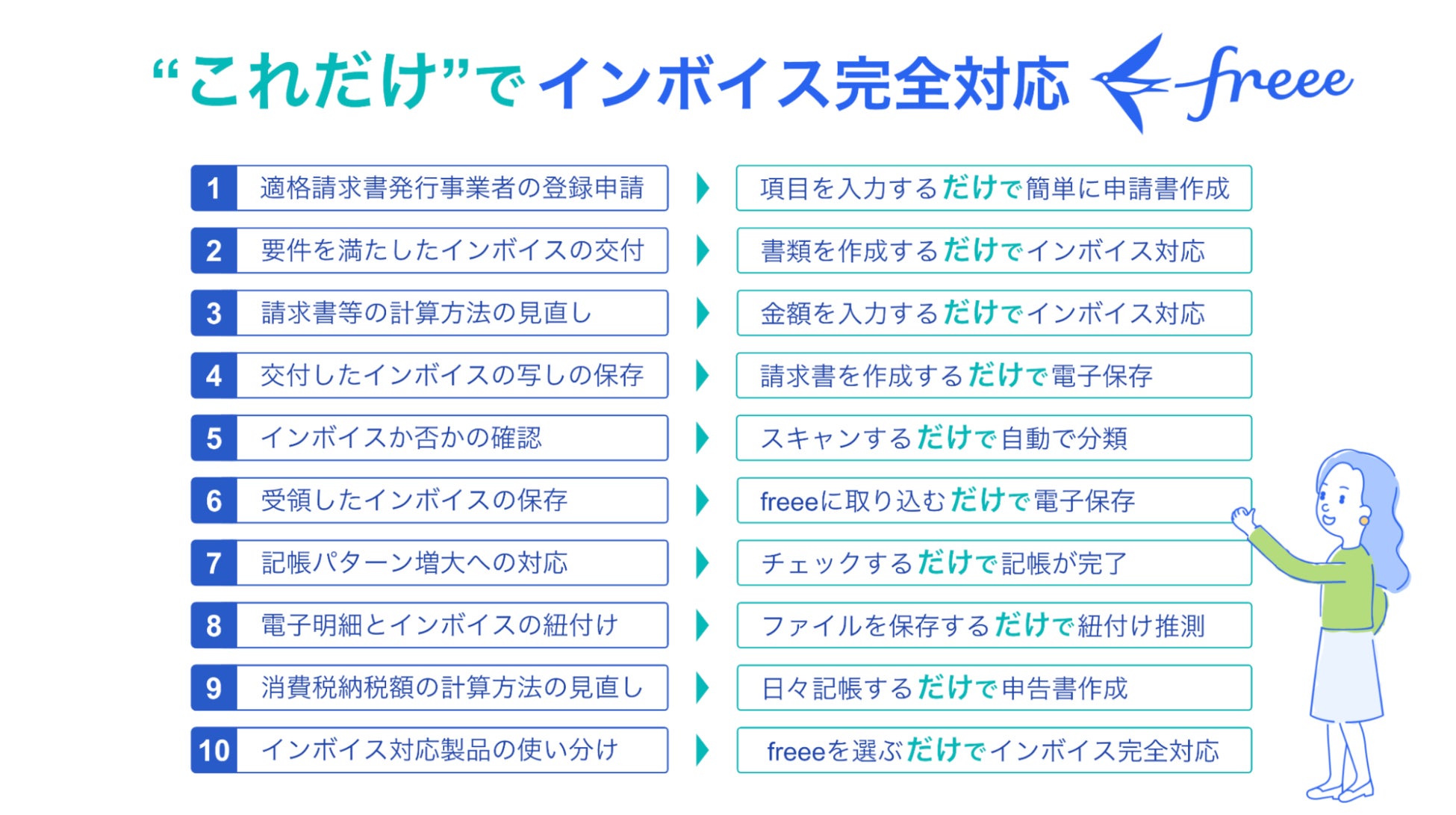 freeeでは“これだけ”でインボイスに完全対応できるよう2023年10月までに各種項目の開発を行う方針です。