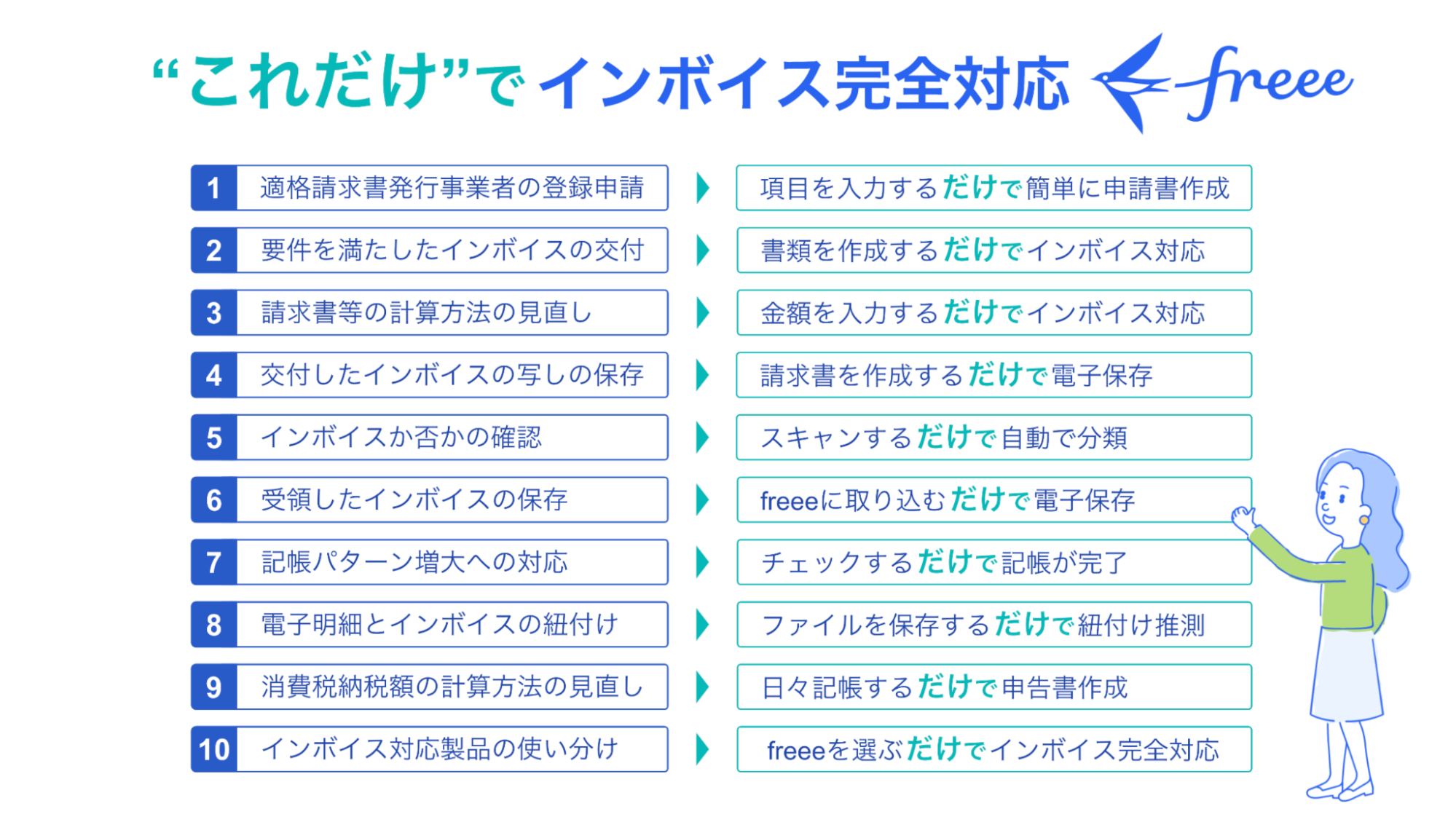 今後インボイス制度対応で必要となる全ての項目に対応します。