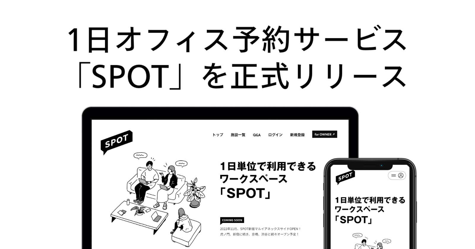 2022年4月より既存施設にて1日オフィスのテスト運用を開始したところ、ご好評をいただき、1日オフィス事業に着手。7月7日に虎ノ門にて「SPOT虎ノ門ヒルズビジネスタワーサイド」をプレオープンしましたが、この度10月1日より、1日オフィス予約サービス「SPOT」を正式にリリースいたします。