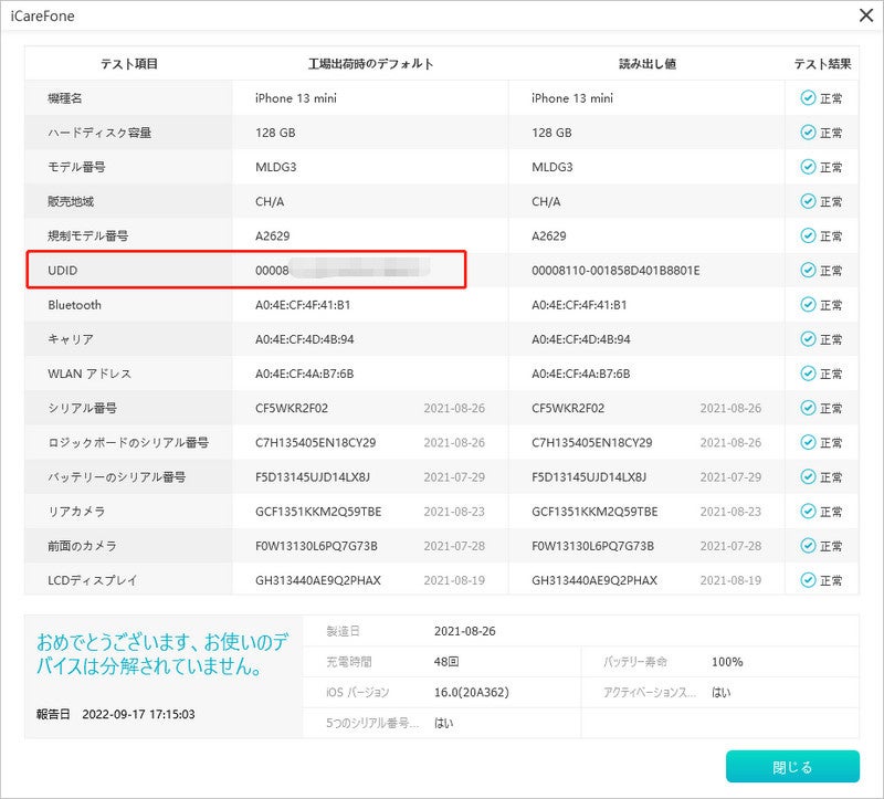 手順2:表示された画面よりお使いのiPhone、またはiPadのUDIDを確認できます。