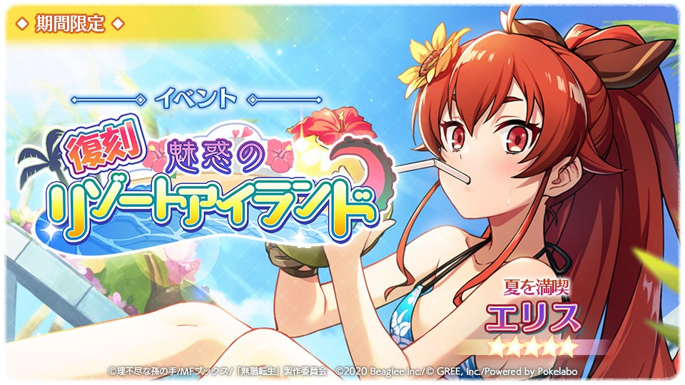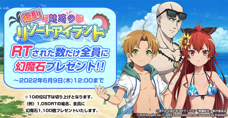 コミック配信サービス『まんが王国』(https://comic.k-manga.jp/)を中核に、コンテンツプロデュースを行う株式会社ビーグリー(本社:東京都港区、代表取締役:吉田仁平、東証プライム:3981)は、スマートフォンゲーム『無職転生~ゲームになっても本気だす~』において、2022年6月2日(木)より、復刻イベント「魅惑のリゾートアイランド」を開催中です。