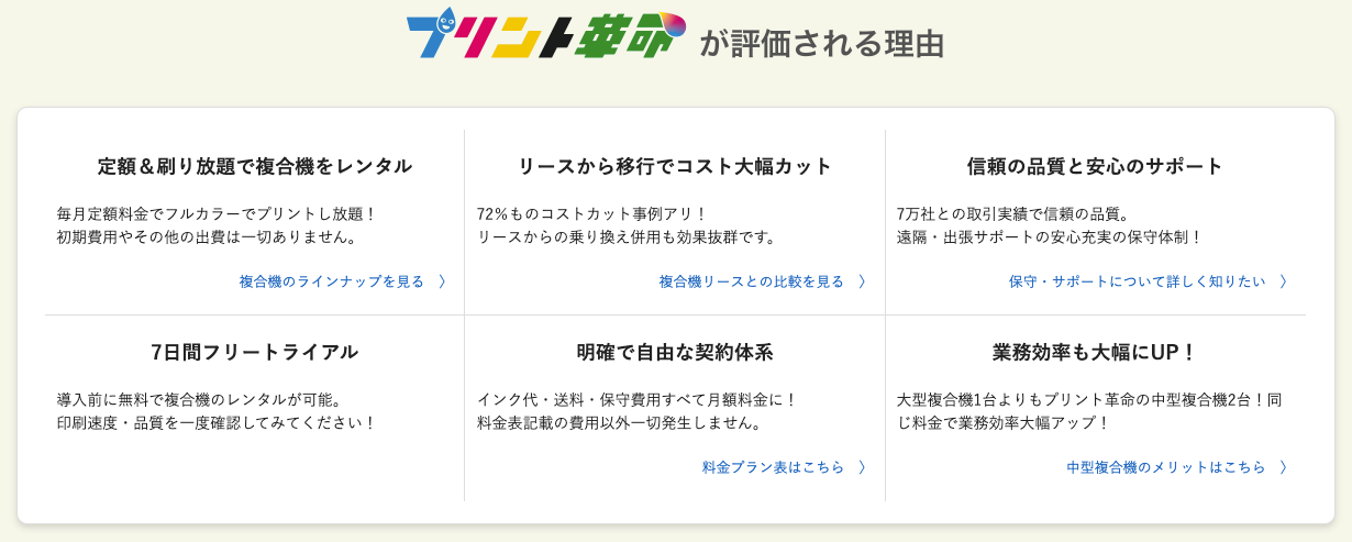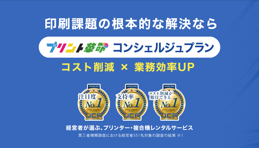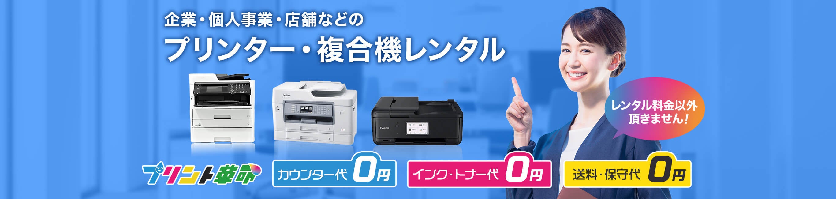 企業・個人事業・店舗等向け、プリンター・複合機のレンタルサービス。リース+カウンター料金/月コストが通常である複合機市場において、サブスクプランの導入により大幅なコスト削減を可能にしてきた。