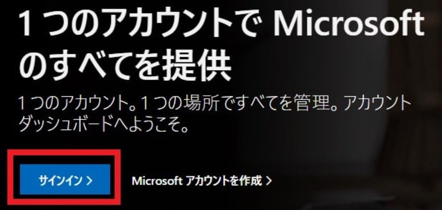 1.Microsoftアカウントの公式ホームページを開いて「サインイン」をクリックします。