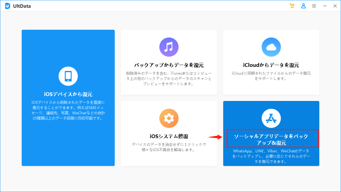 手順1:ソーシャルアプリデータをバックアップ&復元をクリックする
