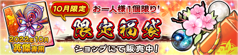 当月に開催されるイベント「【想いの爪痕】&【調伏戦】特効! 英傑 縁結び」で使用できる「【御朱印付き】10月・英傑結糸(10回)」を1個と、キャラクターの強化に必要なアイテムがまとめて手に入るお得なセットです。